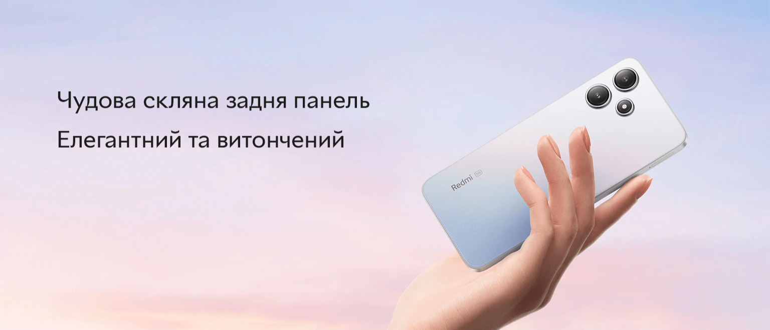 Redmi 12 5G товщиною всього 8.17 мм надає абсолютно нового змісту зовнішньому вигляду та гарному самопочуттю завдяки стильній та міцній скляній задній панелі.