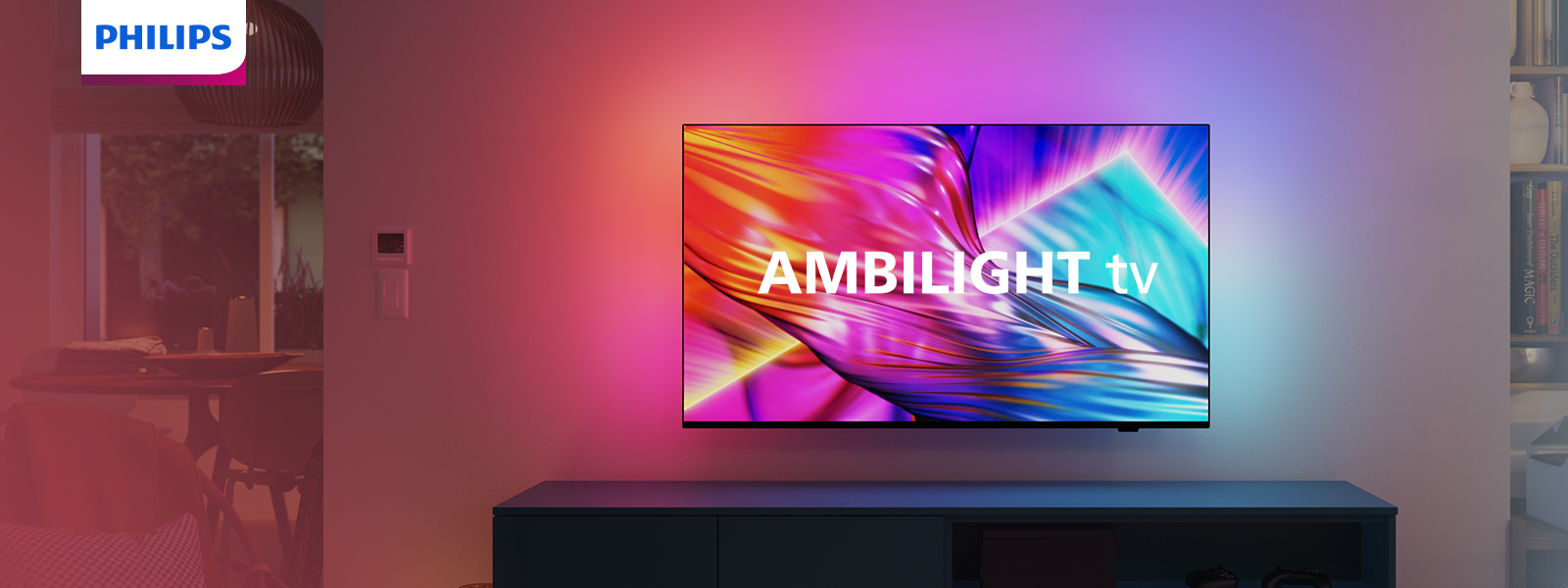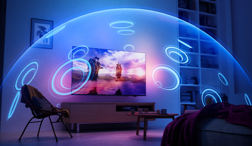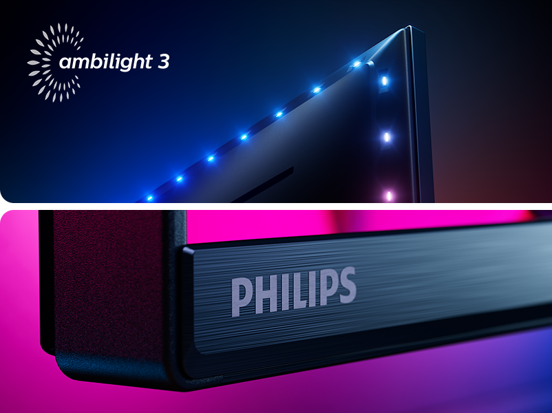 Телевізори з Ambilight — це єдині телевізори зі світлодіодним фоновим підсвічуванням позаду телевізора, яке реагує на зображення, яке ви переглядаєте, занурюючи вас у перегляд вражаючим ореолом різнокольорового світіння.