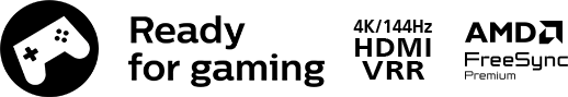 *Підтримується частота до 144 Гц при 4K для ігор на ПК, що підключені через HDMI 2.1, до відеокарт, що підтримують режим 144Hz@4K на ПК.