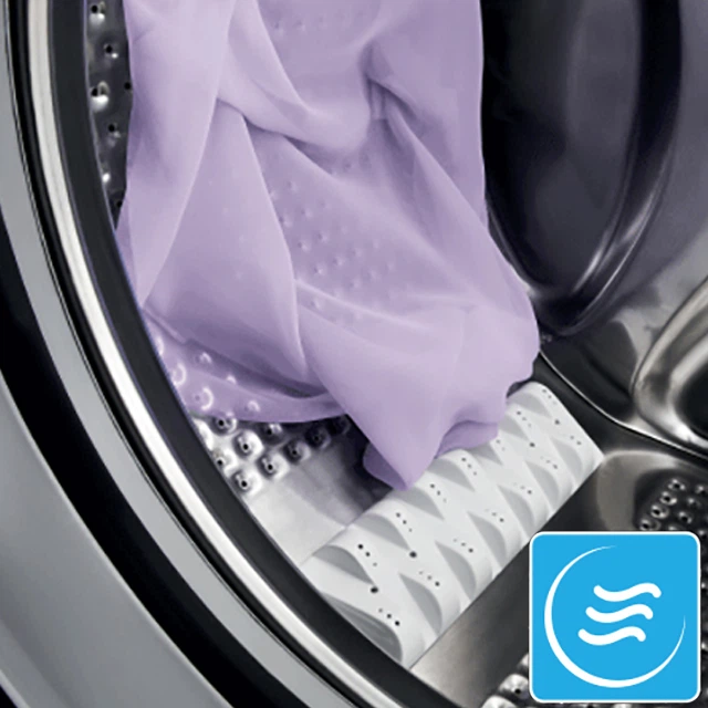 Для ефективнішого прання пральна машина обладнана технологією WaveMotion. Пральна машина виконує оберти, рівномірно розподіляючи речі всередині барабана, унаслідок цього пральний засіб проникає глибше у волокна тканини й ефективніше усуває забруднення.