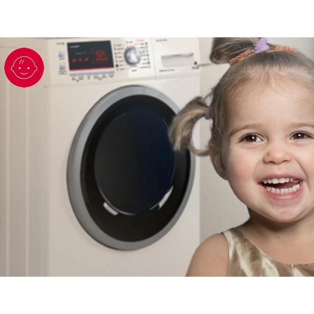 Ця функція особливо корисна для сімей з дітьми, так як не дозволяє дітям випадково змінити налаштування і програми прання. Потрібно лише натиснути на дві кнопки, щоб активувати функцію захисту від дітей.