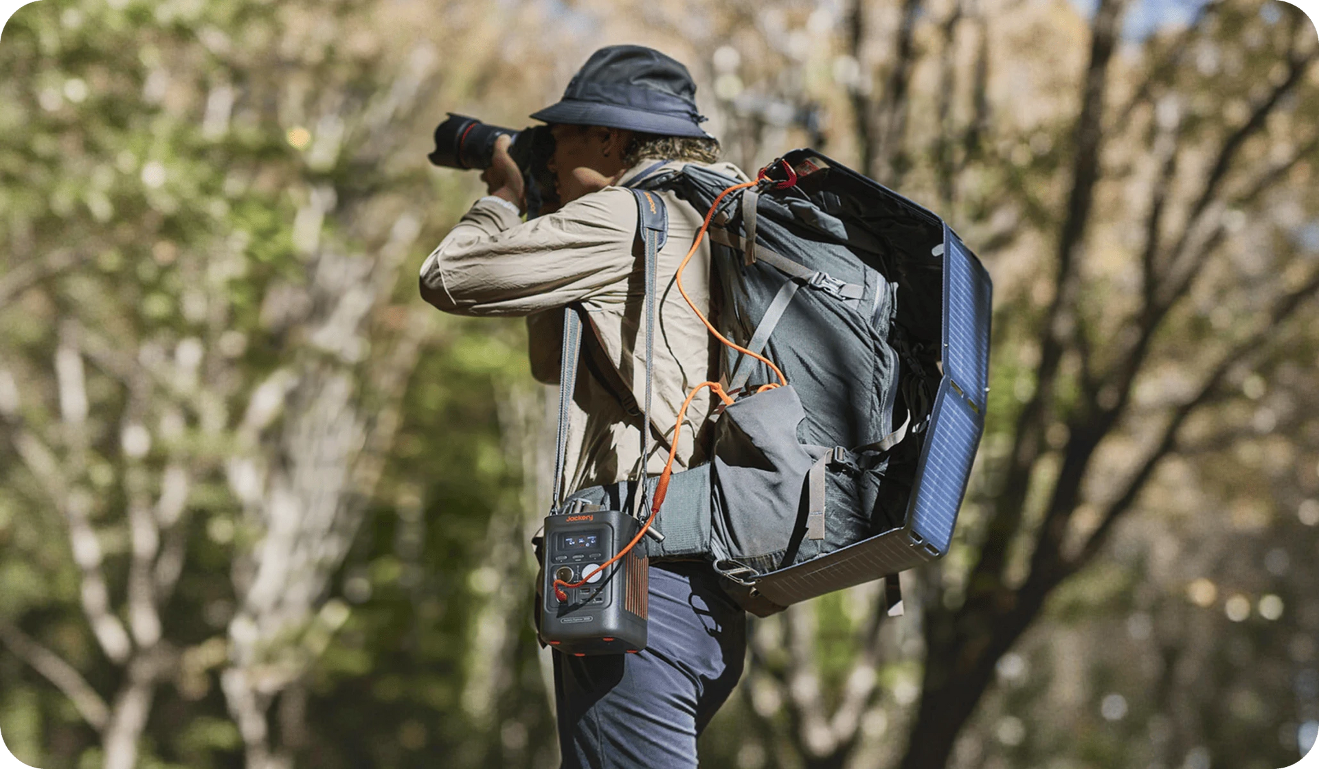 Поєднайте зовнішній акумулятор E300D з компактною складною сонячною панеллю потужністю 40 Вт для легкого та розумного поповнення заряду, де б ви не були. Компактний, міцний та легко кріпиться до рюкзака чи велосипеда, він забезпечує стабільну сонячну енергію, куди б не привела ваша пригода.